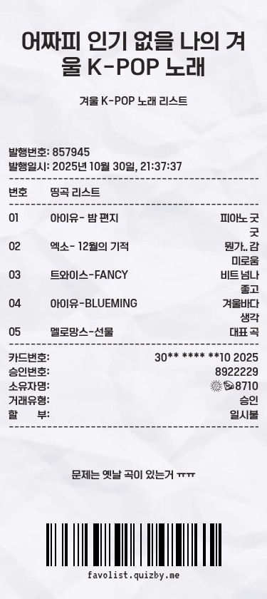 어짜피 인기 없을 나의 겨울 K-POP 노래