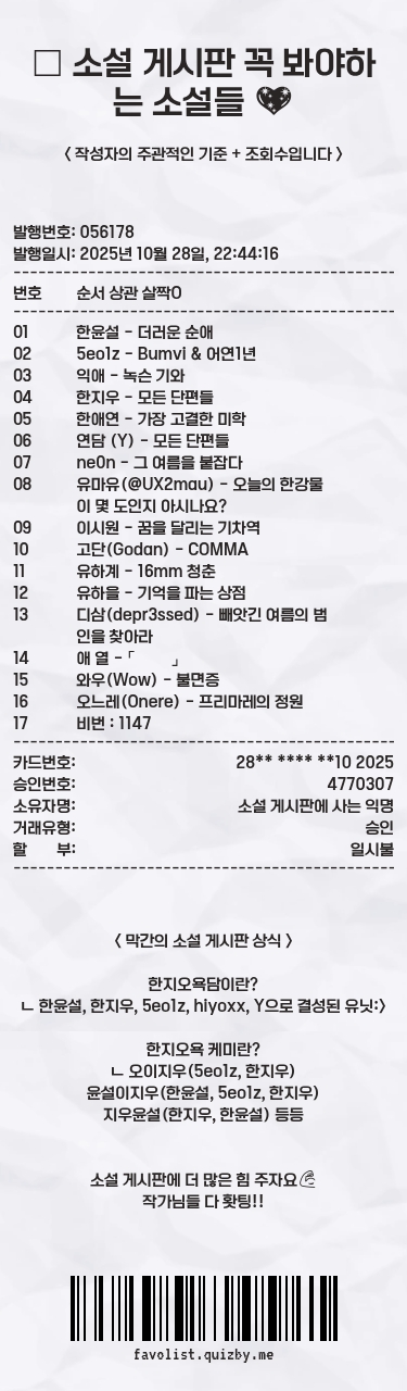 🤯 소설 게시판 꼭 봐야하는 소설들 💖