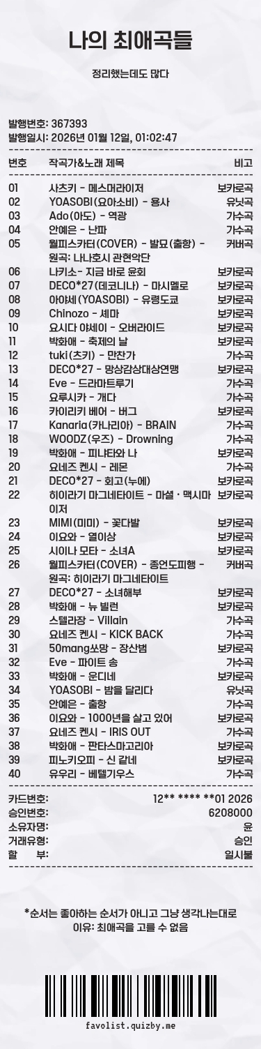 이유: 최애곡을 고를 수 없음