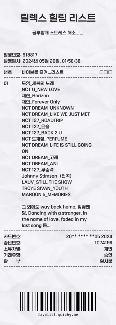 그 외에도 way back home, 벚꽃엔딩, Dancing with a stranger, In the name of love, faded in my last song 등...
