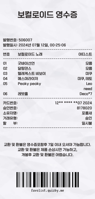 교환 및 환불은 영수증포함후 7일 이내 오셔야 가능합니다.