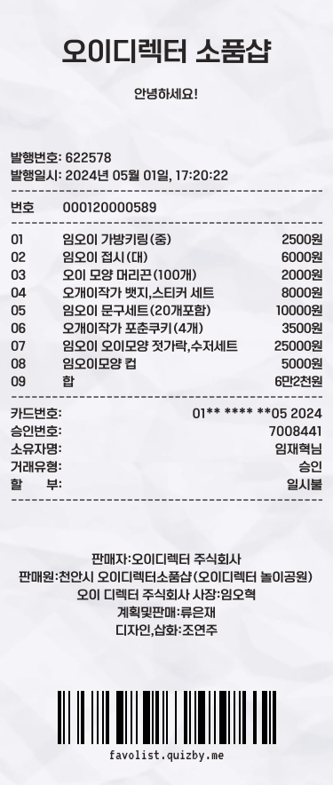 판매원:천안시 오이디렉터소품샵(오이디렉터 놀이공원)