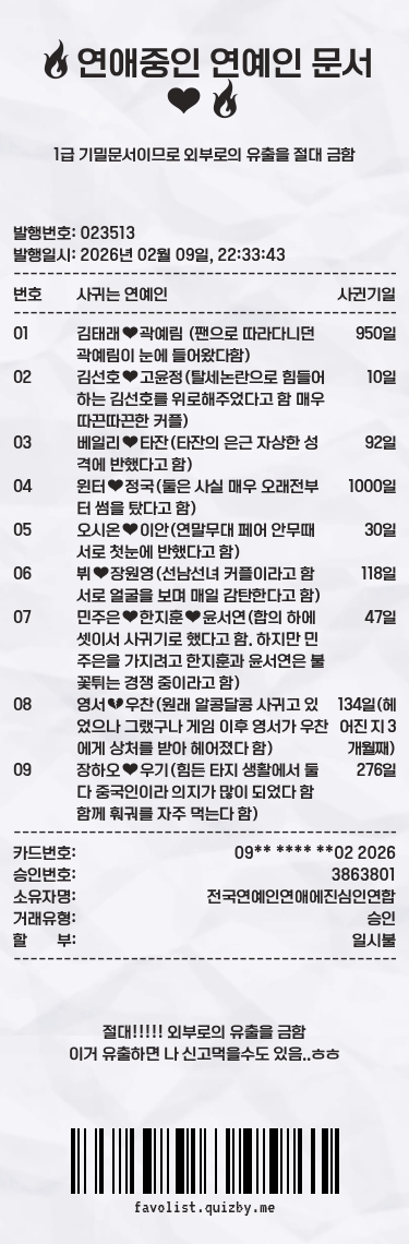 🔥연애중인 연예인 문서❤️🔥